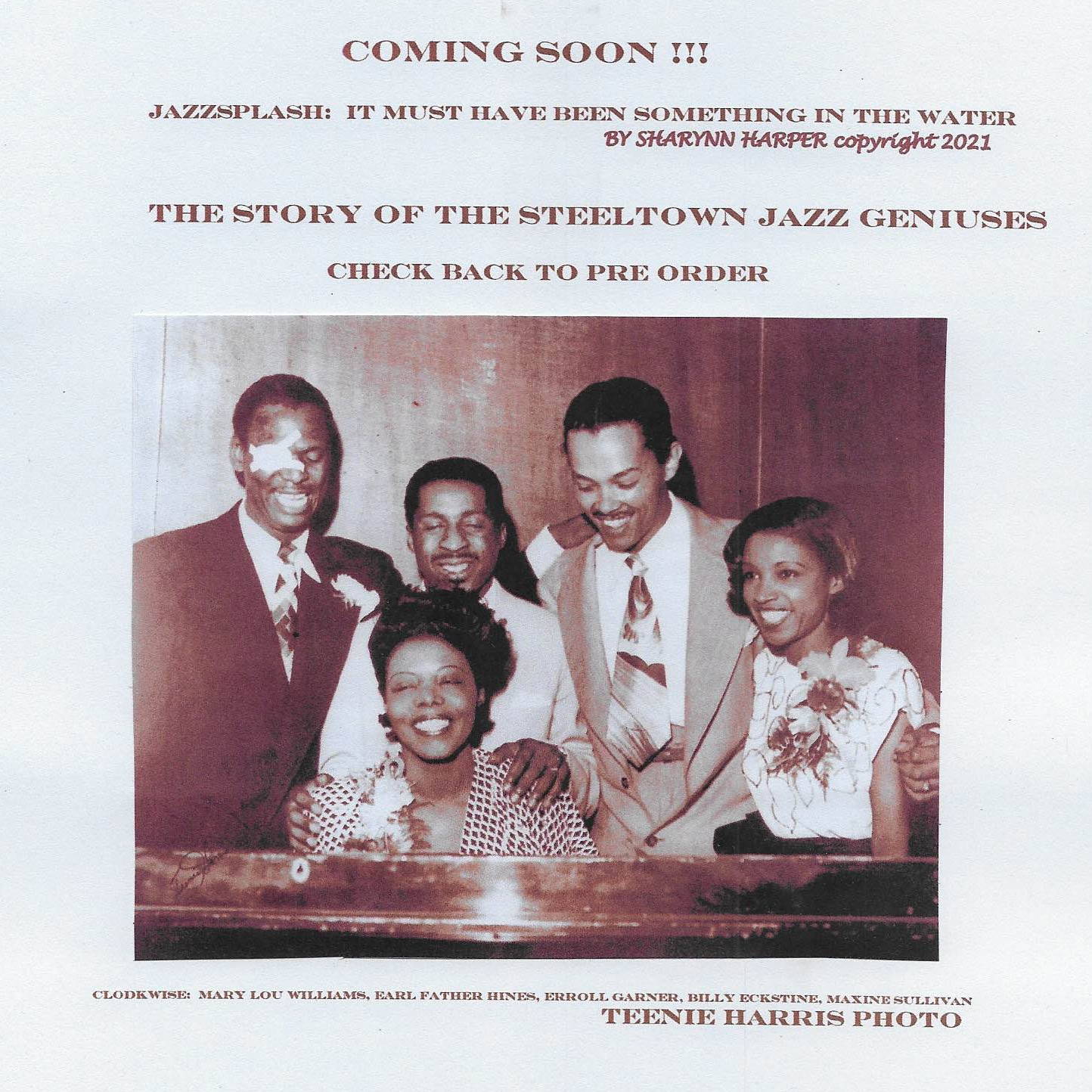 The notion of the Jazz geniuses that have emerged from the steel city of Pittsburgh has suddenly caught on like a firestorm. New York based independent producer/businesswoman Sharynn Harper has gone back to the origins of many of these jazz legends and traced the earlier musical development in the "steel city" that would give birth to their renown, catapulting these jazz icons to the helm of the jazz world.